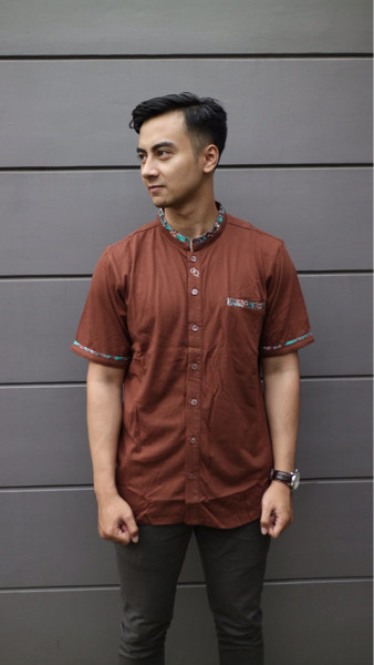 Jual Baju Koko Modern Kaos Muslim Pria Premium Coklat Corak Best