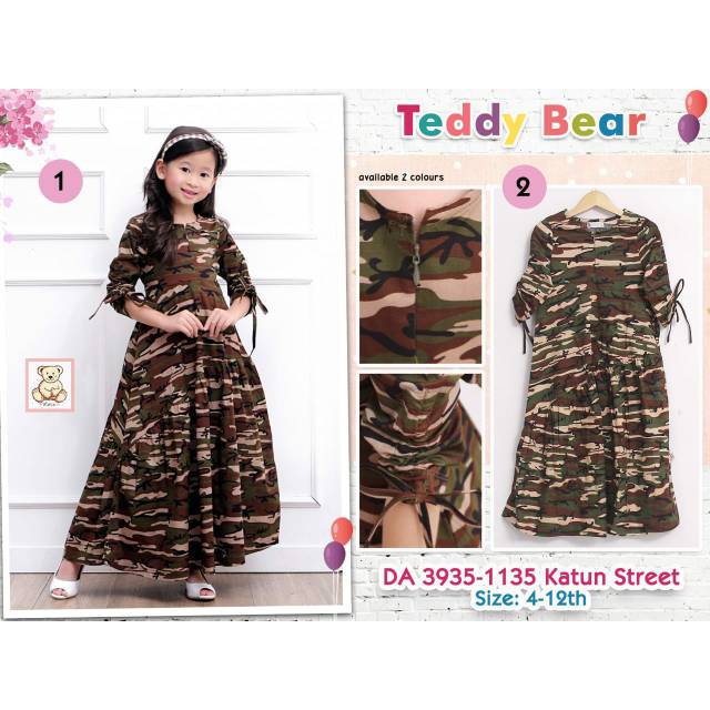 Gamis Anak Army Teddy Bear 4 12 Shopee Indonesia