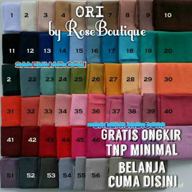 Jual Seri 20 Warna Jilbab Segi Empat Saudia Exclusive Rawis Polos
