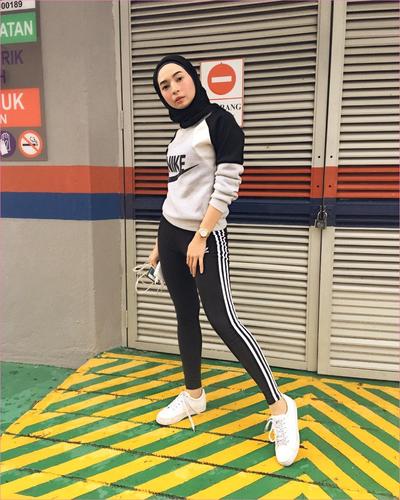 Foto Inspirasi Padu Padan Hijab Syari Sneakers Ala Lyra Virna
