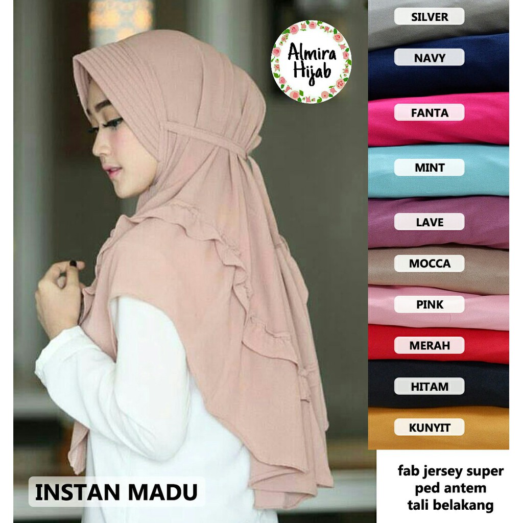 594 1169 24 off cod promo grosir hijab jilbab kerudung khimar syari bergo instant simpel pet antem jumbo terbaru. Untuk membeli produk jilbab instan madu by ixora hijab silakan hubungi kami melalui bbm dan whatsapp yang tertera di website ini. Ammara hijab jilbab instan madu rempel ruffel khimar.